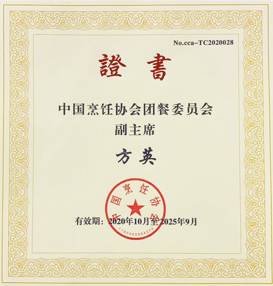 授予方英女士-中國烹飪協(xié)會團(tuán)餐委員會副主席